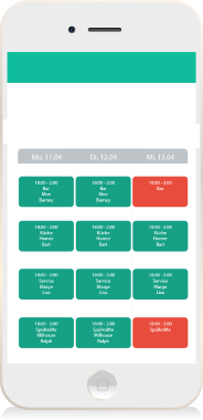 For last-minute changes and confirmation of working hours, your smartphone is a good choice. Your employees can use their smartphone to apply for shifts, correct their working hours or request absences.